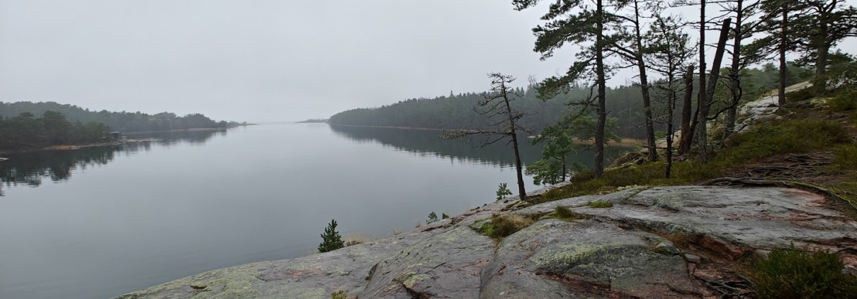 Heti alkumetreillä iski tarve huolelliselle harkinnalle: kannattaako meidän sittenkään lähteä reitille ollenkaan? Silokalliot viettivät alamäkeen, ja sateen vuoksi ne olivat todella liukkaita. Meillä oli tukevat maastokengät, mutta silti oli pakko miettiä, pärjäisimmekö niillä.