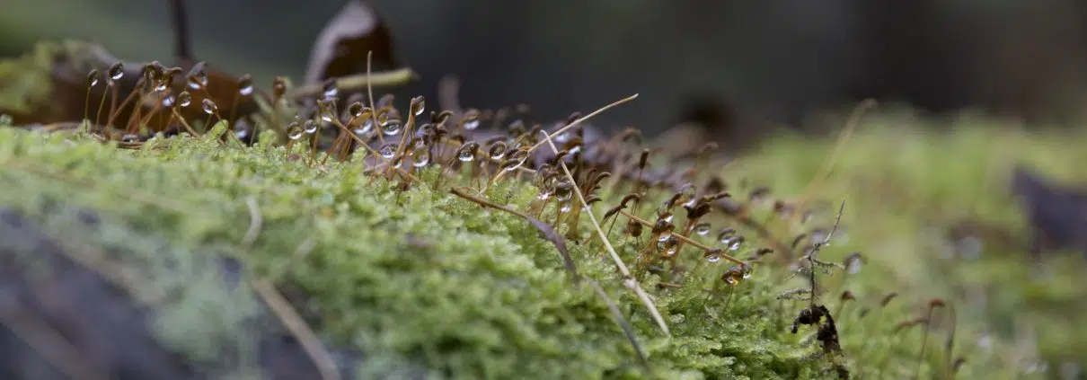 Sateinen metsä on erinäköinen kuin auringon paisteessa. Niinpä sadepäivä sopii yhtä hyvin tutun lähimetsän tutkimiseen kuin mikä tahansa muu päivä ja vielä paremmin, jos lähimetsään ei ole vielä sateella tutustunut. Pilvinen sää syventää niin kesäisen vihreän kuin ruskan värejä ja värit näyttävät voimakkaammilta harmaata taustaa vasten. Tutulla reitillä huomio kiinnittyy yksityiskohtiin, joita ilmestyy… noh, kuin sieniä sateella. Sade virkistää metsän sammalet ja jäkälät, jotka lukuisten sadepisaroiden ohella tarjoavat loistavia kohteita makrokuvaukseen. Tiesitkö, että sammalet ja jäkälät pystyvät imemään kymmenkertaisesti oman painonsa verran vettä? Pienten yksityiskohtien lisäksi eri tulokulmaa tarjoavat reitille kerääntyvät lammikot ja pienimuotoiset järvet.