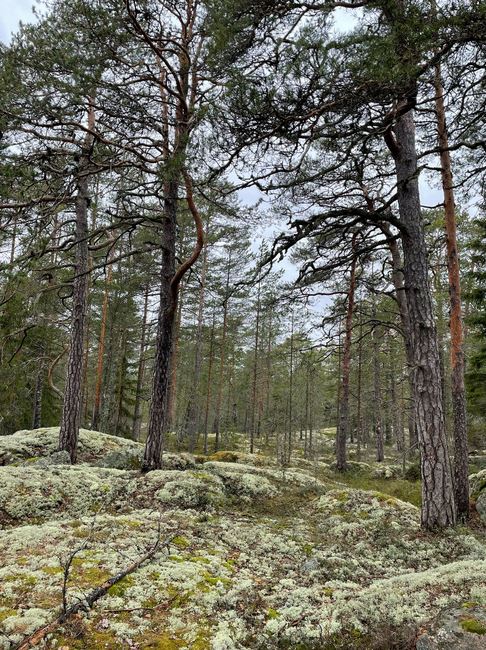 Hyvillä mielin talsin eteenpäin, kunnes hetken päästä reitti ylitti kartasta päätellen kesämökeille vievän ajotien. Parisataa metriä myöhemmin mökkitie ylitetään vielä toisenkin kerran, mikä harmittavasti heikensi ”suuren metsän tuntua”. Pieni harmitus kaikkosi reitin noustessa ylös hienolle kallioalueelle. Sieltä haarautuu pistopolku kohti Virvikin uimarantaa. Mitään viittaa tässä kohdin ei kuitenkaan ollut, joten pistopolku jää ensin helposti havaitsematta.