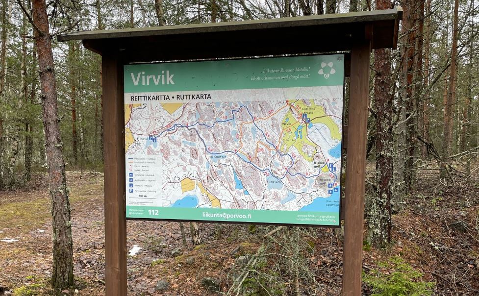 Porvoon kaupunki hankki Virvikin alueen ulkoilijoiden käyttöön vuonna 1971. Tänä päivänä alue tunnetaan parhaiten hienosta golfkentästään. Kotona karttoja tutkaillessa huomasin, että ulkoilualueeseen kuuluu myös metsiä merkittyine reitteineen. Tämä oli minulle uutta, joten päätin kohdistaa kevään ensimmäisen patikkaretkeni niihin maisemiin.