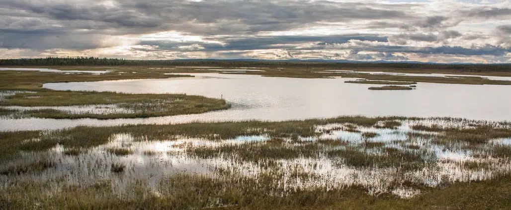 Sateenjälkeiset pilvenriekaleet viipyivät vielä taivaalla. Kaukana kansallispuiston suunnalla ne näyttivät yhä valuvan sateena maankamaralle. Aurinko kultasi niiden reunukset ja suuri taivas sai maan näyttämään vaikuttavalta.