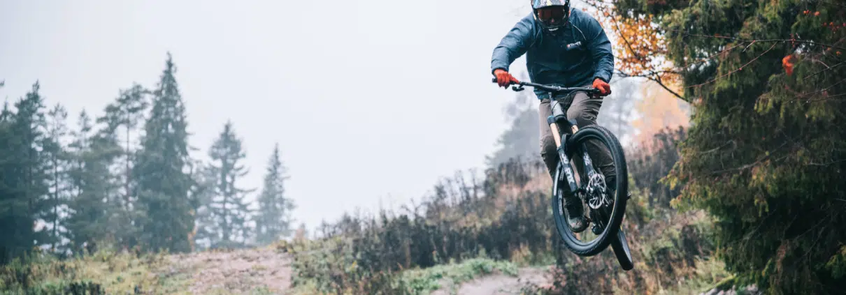 Sen sanottuaan hän karauttaa alamäkeen ja antaa pyöränsä lentää ketterän näköisesti haastavistakin muodoista ajaessaan. Pyyn sulavissa käännöksissä ja töyssyistä vauhtia ottavissa lennoissa näkyy vuosien ajokokemus ja into.