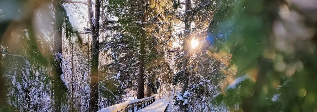 Aloittelevana lumikenkäilijänä olin varsin iloinen saadessani kengät vuokralle Suomen luonto- ja retkeilykeskus Haltiasta, jonka jälkeen lähdin kuitenkin Nuuksion sijaan vähän syrjemmälle ja avoimemmille vesille opettelemaan. Lumikenkäily on kuitenkin verraten helppoa, joten sain pian jujun päästä kiinni ja saatoin nauttia talven kauneudesta täysin siemauksin.