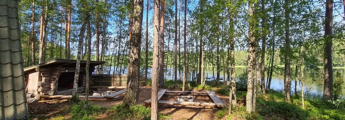 Tuohilammen laavulla on kaksi tulipaikkaa, puuvarasto ja huussi. Laiturilta voi pulahtaa uimaan virkistävään lampeen. Blogin pääkuvassa laajempi kuva Tuohilammen laavun maisemasta.