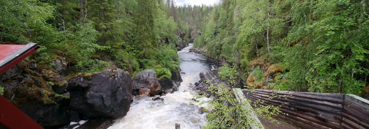 Sopiva sekoitus erilaisia luontotyyppejä, veden kuohua, upeita kivenlohkareita ja historiaa. Helpohko, mutta mäkinen, 3,5 kilometrin pituinen ympyräreitti, jonka hankalimmissa kohdissa on portaita, kävelysiltoja ja pitkospuita. Lisäksi riippusilta joen yli, laavu nuotiopaikkoineen, näkötorni sekä sympaattinen kahvila. Tällainen on Auttikönkään luontopolku Rovaniemellä, Posion rajan tuntumassa.