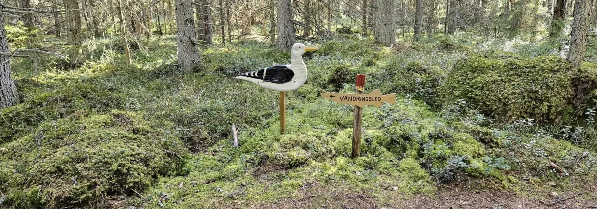 Bergön vaellusreitti – Bergö vandringsled. Mikä kavalkadi lintuveistoksia, tauluja ja kuusimetsää! Paikallinen taiteilija Lars Göran Söderholm on luonut kävelyreitin varrelle valtavasti katsottavaa. Seitsemän kilometrin kävely sujuu hujauksessa veistoksia ihmetellessä.