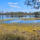 Taukopaikalla on piknikpöytä kauniin lahden rannalla. Näkyisikö pikku järvellä oikeita lintuja – no, ei tänään. Minulla ei ollut vielä tauon tarvetta, halusin jatkaa kävelyä vielä hetken. Otin pari valokuvaa ja palailin ympyräreitille.