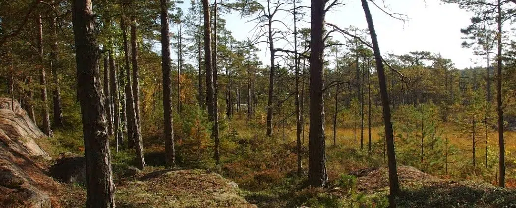 Kartan mukaan olen saapunut vanhaan metsään ja tunnelma on sen mukainen: elämää ja monimuotoisuutta pursuava. Syksyisen metsän pohja on täynnä mitä erilaisimpia sieniä. Sammalmättäillä pötköttää lahopuita, joita pitkin ryömii jos jonkinlaista hyönteistä ja limasientä. Haistelen ilmaa; syksyinen vanha metsä tuoksuu salmiakkisen makealta. Polku kiipustaa kuin huomaamatta askel askeleelta ylöspäin, ja metsä ympärillä avartuu vähitellen kilpikaarnaisten mäntyjen hallitsemaksi sekametsäksi.