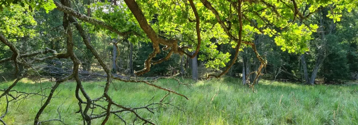 Välillä kuljetaan tammimetsän siimeksessä, sitten aukeaa taas niittymaisema.