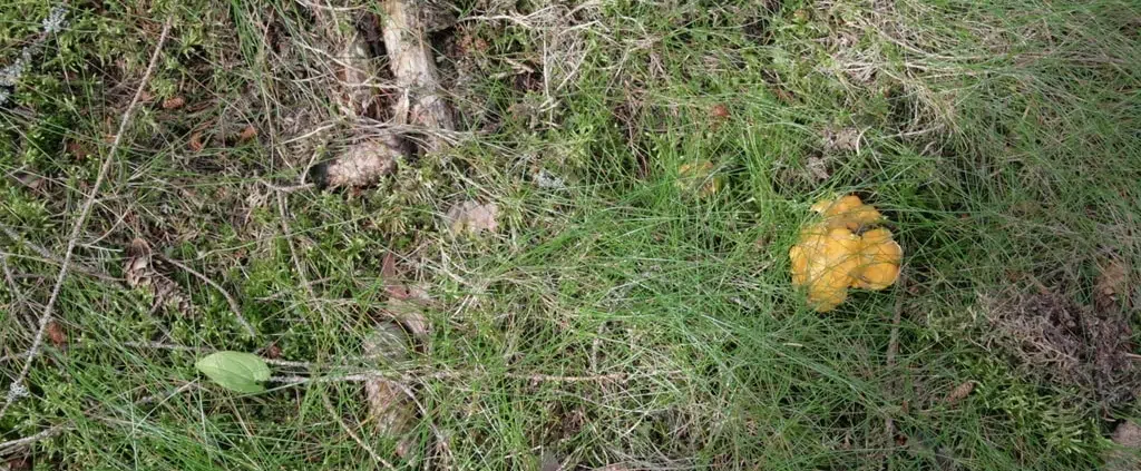Suojelualueeseen rajautuvassa tunnelmallisessa, joskaan ei vallan luonnontilaisessa varttuneessa kasvatusmetsässä sen sijaan lajikirjo oli suurempi. Sammaleesta puski kuin puskikin kastiketarpeet kantarellia, vaaleaorakasta ja olipa yksi torvisienikin hairahtunut näkyville. Suuremman ällistyksen tarjosi kuitenkin noidankehä, joka yllätti pienen jyrkkämän reunan tuntumassa olleen aukontapaisen keskellä. Siinä se oli, kaunis kivikehä ja keskellä pari suurempaa kiveä. Ikivanhalta se näyttänyt, mutta puhuttelevalta kylläkin.