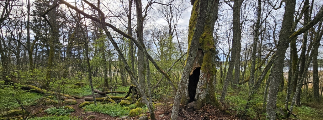 Ja löytyihän se. Blogin pääkuvassa lehmus on kuvattu vielä hieman korkeammalta mäen laelta. Korkeuseroa lienee vain kymmenisen metriä, kovin korkeasta vuoresta ei ole kyse. Lehmuksen sisällä voi tosiaan käväistä, tässä kaksi eri käyntiäni vuosilta 2025 ja 2013.