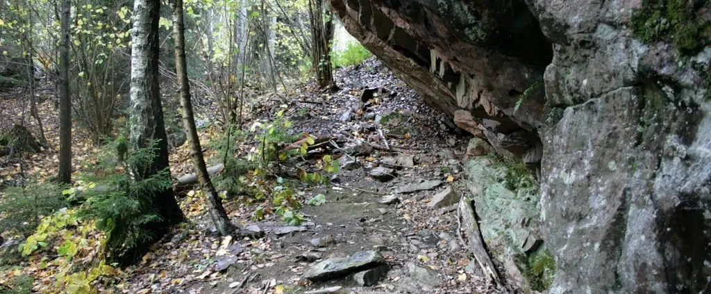 Kohta edessäni olleen jyrkänteen seinämä näyttikin kaltevuutensa. Vaikka paikalla oli mittaa ihan kunnioitettavasti, ei se kuitenkaan noussut näyttävyydessä lähellekään monia vaatimattomampia lippaluolia. Koska olin sateisena päivänä liikenteessä, saatoin todeta paikan todellakin täyttävän lippaluolan kriteerit. Syvyyttä 5 metriä, leveyttä 20 ja korkeutta 2-6 metriä. Sen sijaan paikallisten tarinoiden kertomukset siellä majailleista petoeläimistä tuntuivat turhan lennokkailta. Tai sitten sen todellisen luolan sijaintia ei oltu vieraiden kanssa jaettu. Tokkopa näin, vaan tarinat lievät kasvaneet tosiasioita suuremmiksi vuosien saatossa. Sen sijaan kaksijalkaisista pedoista paikka oli hyvinkin jälkiä, niin puisia kuin metallisia. Siellä olivat luolamiehet rillanneet, niin että ritilät unohtuivat.