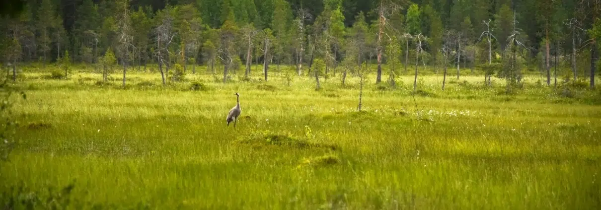 Meidän ajellessamme ei missään näkynyt ketään muuta, kuin suolla kuikuileva kurki. Erämaan tunne oli aito, ja olisi siellä suon laidassa ollut helppo kuvitella vaikka kontionkin askareitaan hoitavan.