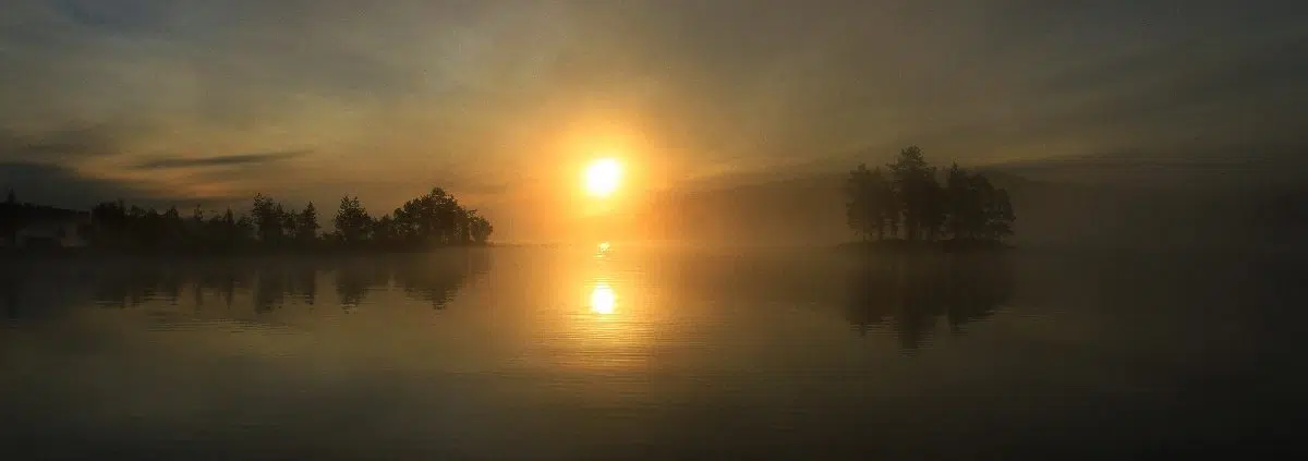 Usva kietoo Kalajanjärven pauloihinsa. Kuva Jouni Lehmonen.