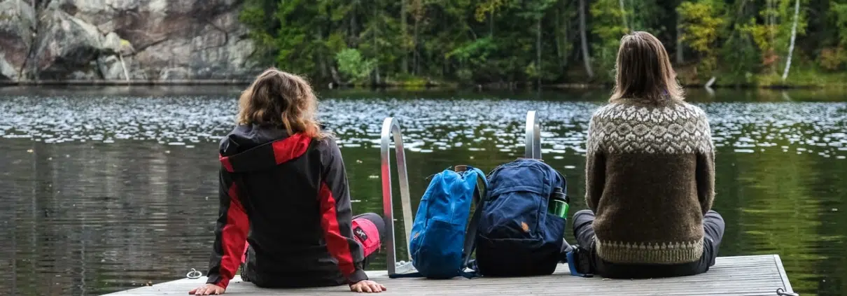 Marilla ja Karolla oli mukanaan Retkipaikan varustevuokraamon reput. Meillä oli reissussa myös vuokraamosta saatava retkikeitin, mutta sillä olimme evästelleet jo aiemmin aamulla Haukankierroksen hienolla näköalapaikalla, joten se sai nyt tässä vaiheessa jo pysytellä repussa. Vuokraamo on kätevä retkeilijän apu. Sitä kannattaa hyödyntää, niin ei tarvitse ostaa omaksi huollettavaksi ja säilytettäväksi kaikkea retkillä tarvittavaa välinettä.