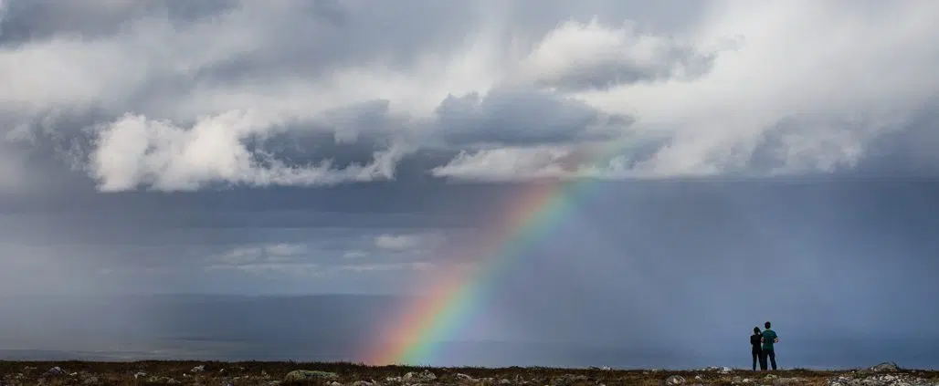 Älä siis noudata haluasi jättää oma jälki, ”kivinen torni” luontoon, sillä se ei sinne kuulu. Muinaisista kasoista ei saa siirtää kiviä pois eikä ottaa mukaansa. Älä ole lammas kivien kantajien virrassa! Kuvan retkeilijät tyytyivät tuuletuksiin Lumikeron huipulla.