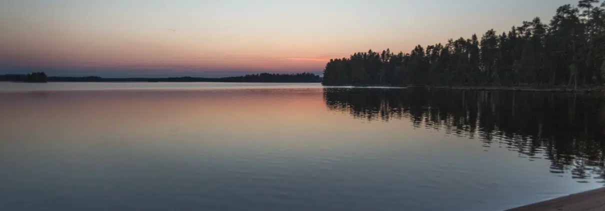 Pitkospuut ja juurakkoinen metsäpolku johdattelevat suolta syvemmälle metsään, jossa vastaan tuleekin kedoksi muuttunut pihapiiri hirsirakennuksineen. Polku jatkaa etenemistään ja seuraan uteliaana tuon vielä vieraan tuttavuuden perässä, kunnes yhtäkkiä seisomme hiljaa metsän laidalla. Eteemme avautuu kullan värinen hiekkaranta, joka kaartuu loivana lahtena pitkälle horisonttiin. Hiekka hyväilee varpaita, ja purppuran sävyissä hehkuva vesi on linnunmaitoa. Rannalla vietetty viikonloppu tuntuu kuin etelänmatkalta, ja kesäistä ukkoskuuroa on helppo juosta autoon turvaan.