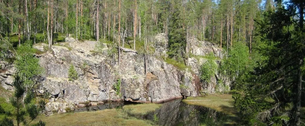 Lähdin saapastelemaan kapeahkon, soistuneen laakson itäreunaa pohjoiseen ja pian saavuinkin tiheiköstä avarampaan kalliomaastoon. Hiidenlinnan rotko on leikkautunut matalan tonaliittisen kalliokohouman halki, ja se on noin 300 metriä pitkä, 20–30 metriä leveä ja 3–8 metriä syvä.