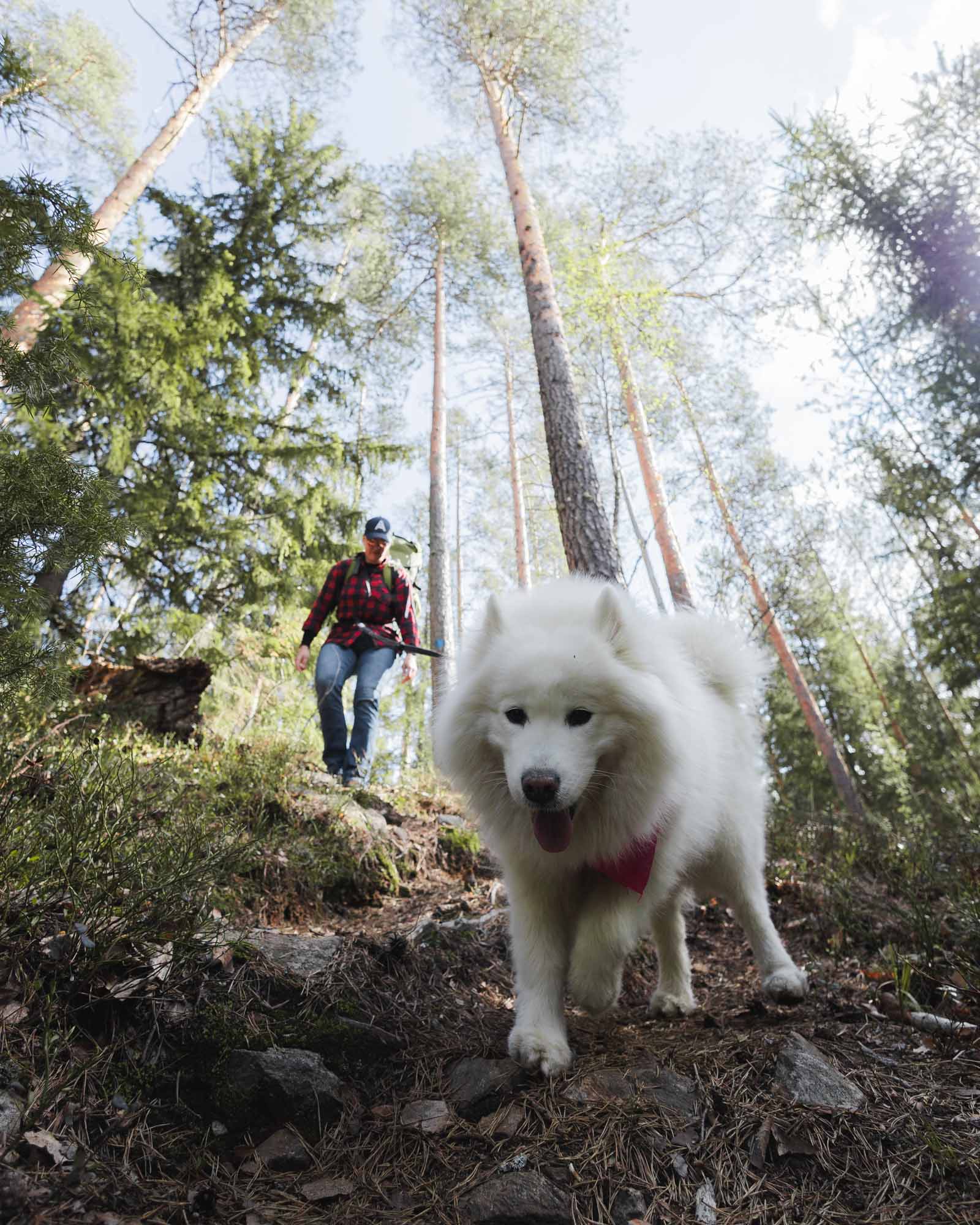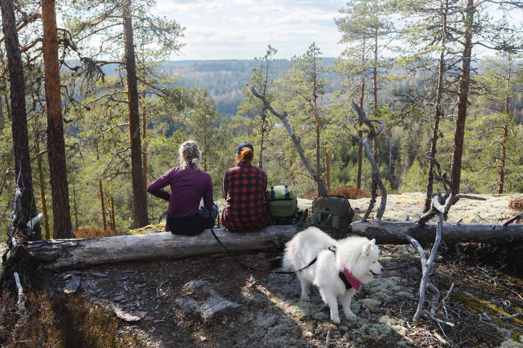 Neitvuoren parkkipaikalla alkukesäinen sää näytti kirkkaan aurinkoiselta, mutta onneksi aamu oli vielä mukavan viileä. Tiedossa olisi mäkistä maastoa, ja mukaan oli pakattu ehkä vähän liiankin painavaa evästä, joten viileys ja pieni tuulenvire olivat tässä vaiheessa erittäin tervetulleita. Nappasimme rinkat selkään ja suuntasimme kohti puiden takana kohoavaa Neitvuorta.