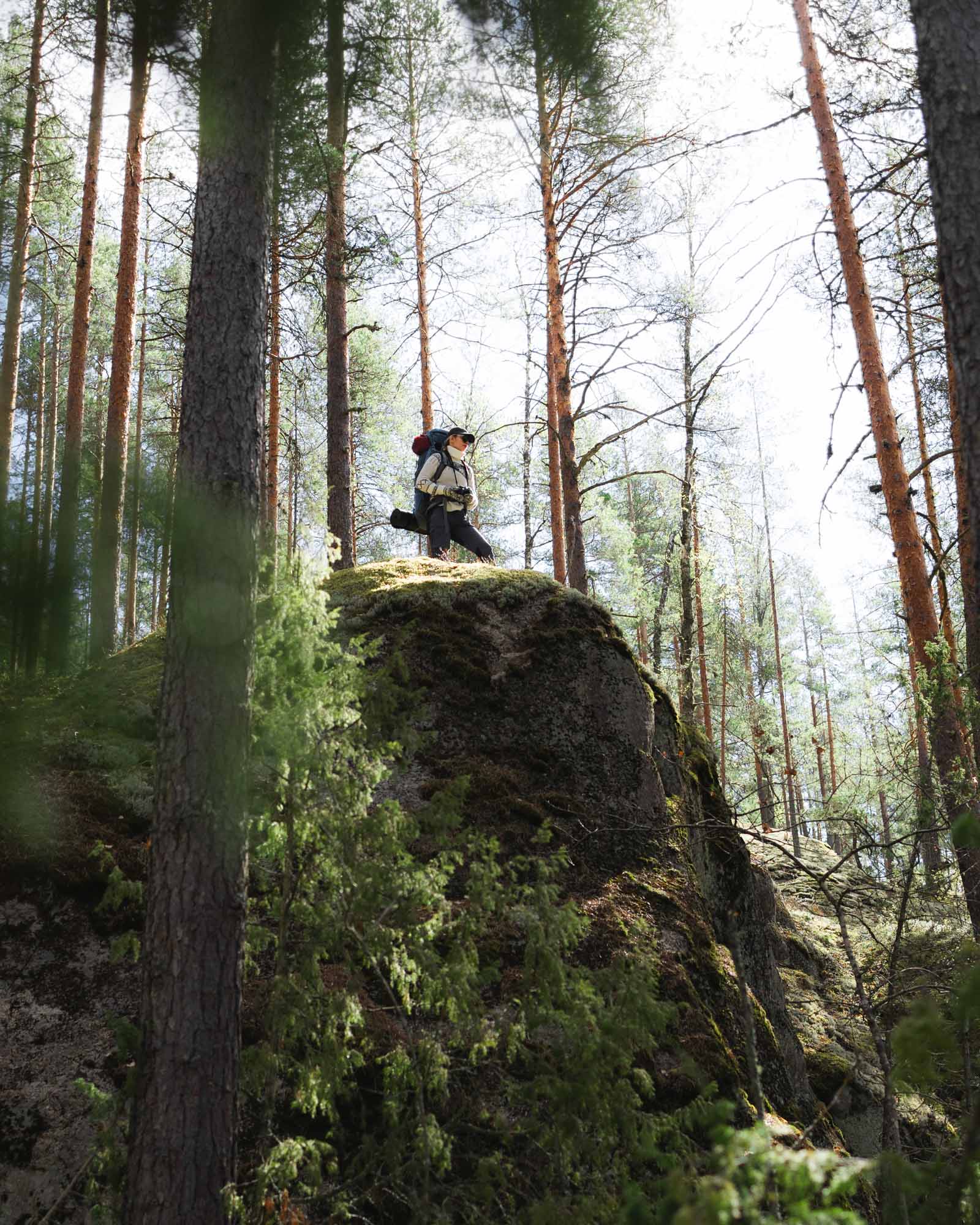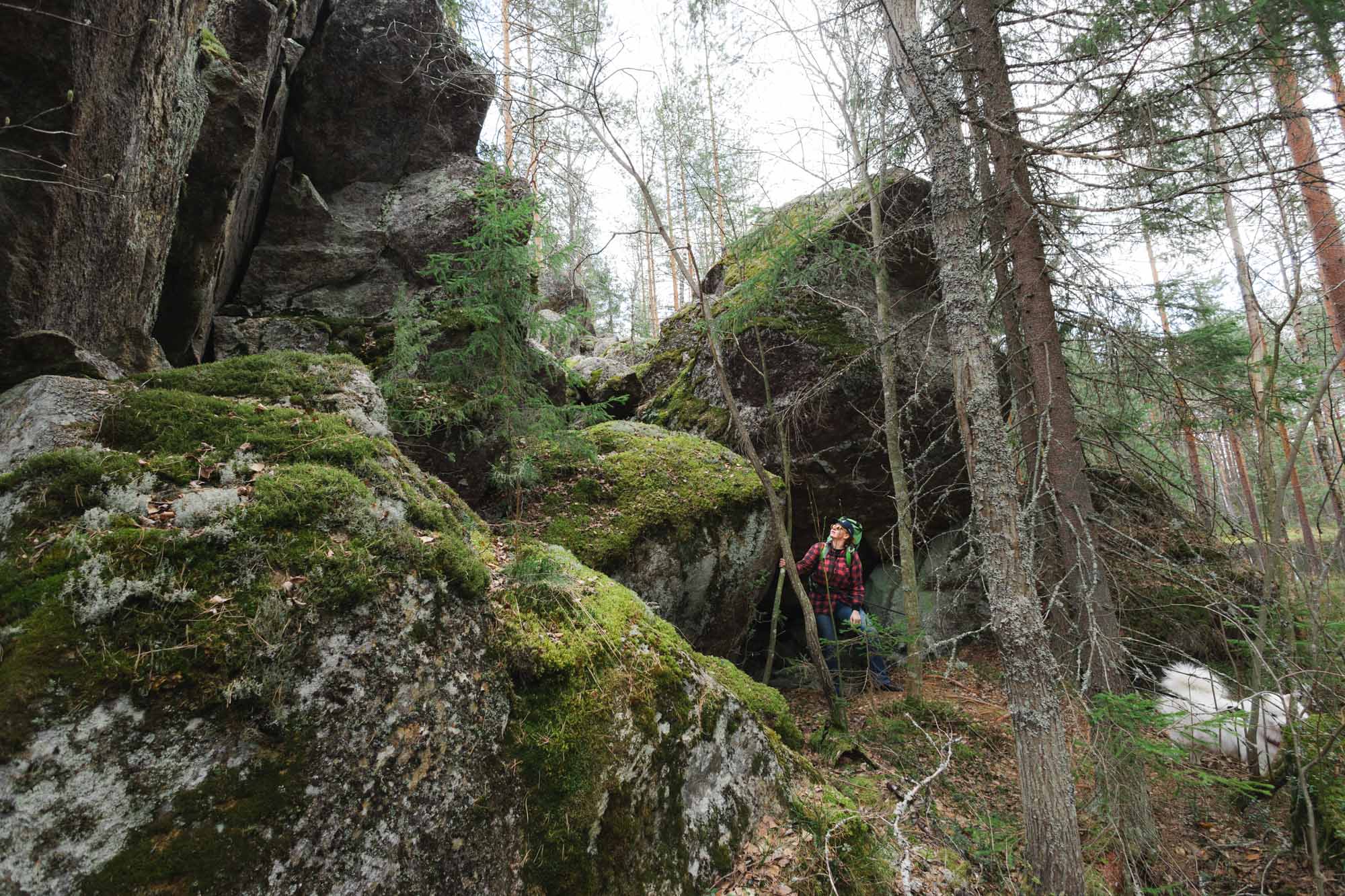Joka puolella oli muhkeita siirtolohkareita, vanhoja keloja ja koskemattoman näköisiä metsäosuuksia. Jääkauden merkit olivat täälläkin selvästi nähtävissä. Vastaan tuli paljon mielenkiintoista tutkittavaa, kuten valtavien lohkareiden muodostama kasa, jonka alta löytyi useita luolia ihmeteltäväksi.