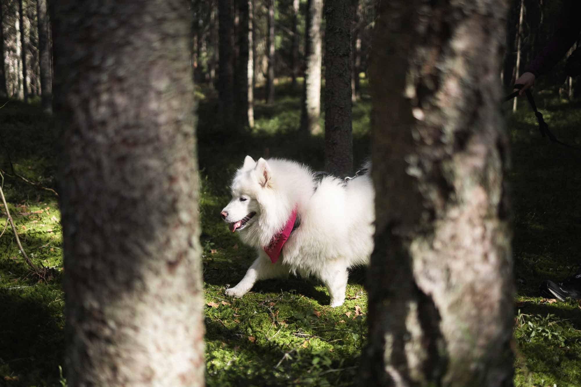 Koska reitti ei ole rengasmuotoinen, veimme suppilaudat odottamaan valmiiksi kävelyn päätepisteelle Siikakoskelle. Sieltä oli onneksi mahdollisuus myös vuokrata inkkarikanootti Netalle ja Sirkulle, jotka eivät olleet vielä kovin tottuneita vesillä liikkujia. Kanootti olisi turvallinen valinta harjoitella, sillä Sirkku kyllä rakasti vettä, mutta enemmän kahlaamista ja vesilätäkössä piehtaroimista kuin laudan päällä tasapainoilua.
