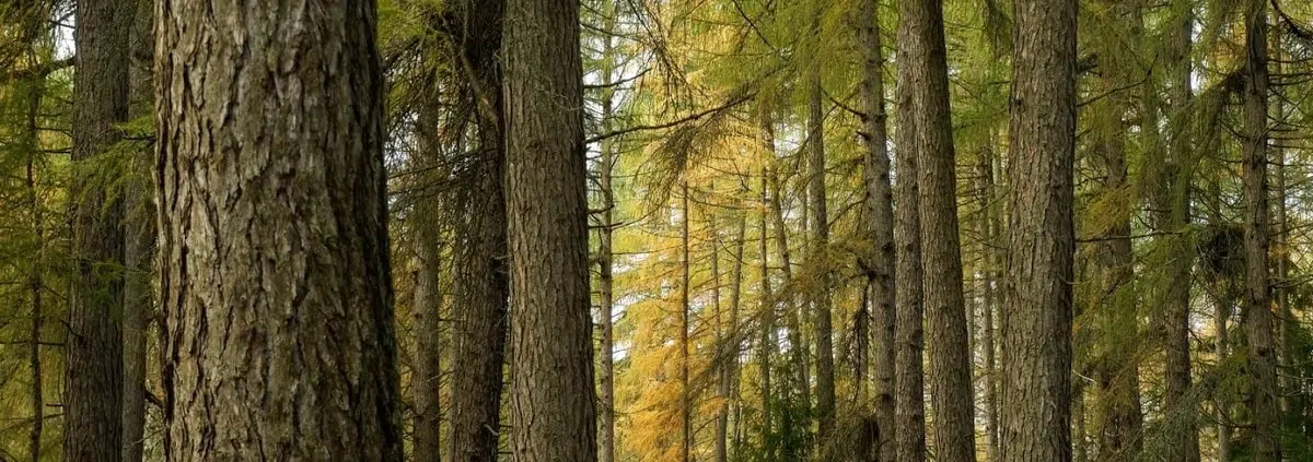 Vaikka autotie halkoo metsää, sulkevat lehtikuusien hämy ja metsän poikkeuksellinen tunnelma nopeasti huomaansa. Niskaa saa taivuttaa kunnolla, mikäli mielii nähdä puiden latvat. Alempana metsän tasolla merkillisesti roikkuvat luihut lehtikuusien oksat, kun taas lähempänä latvoja metsän oksisto on terhakas.