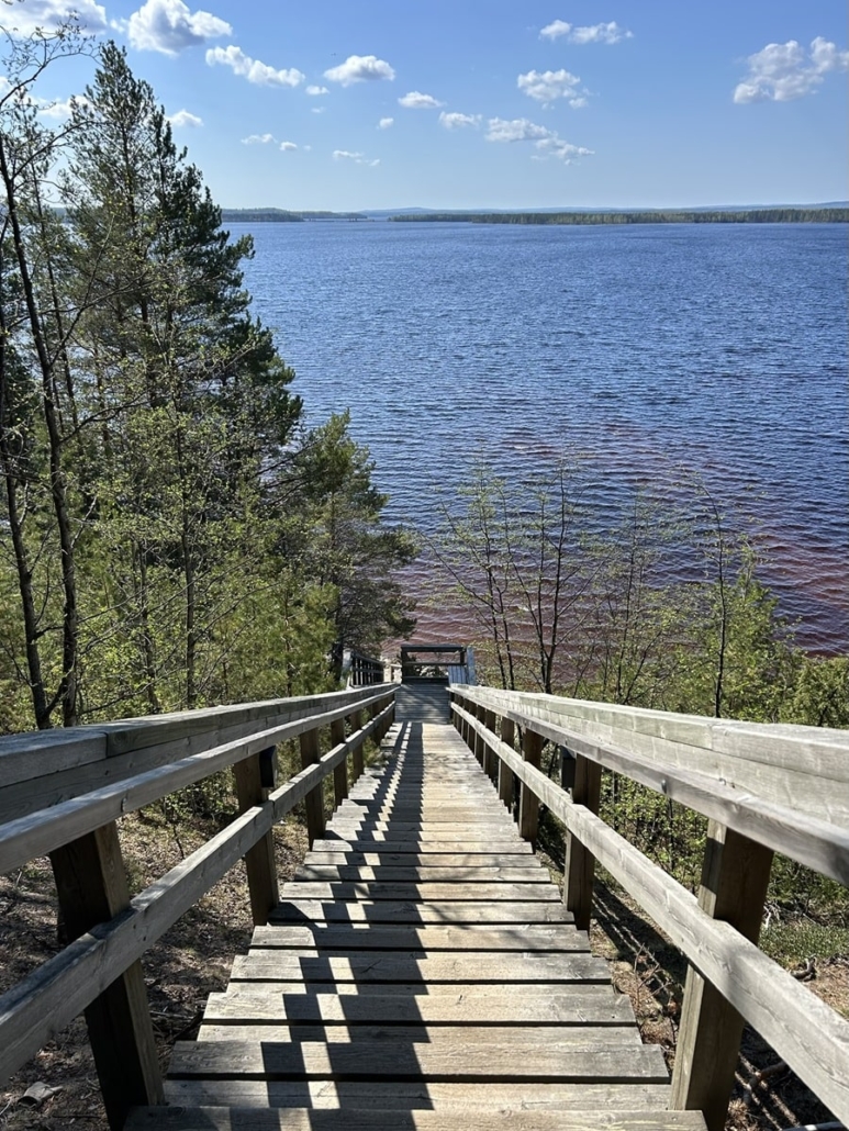 Heti Hiukan rantatörmän korkeimman kohdan jälkeen, muutama sata metriä uimarannalta, tulevat vastaan portaat. Ovatko nämä Suomen hienoimmalla paikalla olevat kuntoportaat? En tiedä, mutta kyllä nämä yhdet upeimmista varmasti ovat. Etelätuulella näissä saa myös varsin mukavan myötätuulen helpottamaan kipuamista. Korkeuseroa on noin 30 metriä. Kävellen minulla menee nousuun hitusen yli minuutti. Tämä tiedoksi porrastreeneistä innostuneille.
