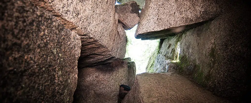 Loppuviimein luolalle oli kuitenkin helppo löytää seuraamalla Ristijärven itärantaa. Rannan lähettyviltä pilkotti jo pidemmälle lohkareikko, jonka arvasimme helposti luolan kätköpaikaksi.