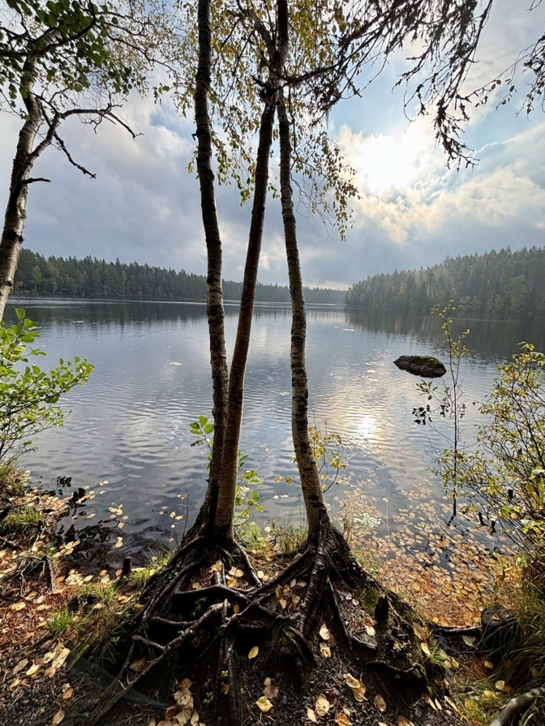 Laskeuduin alas kalliolta, kuljin pienen suon yli johtavia pitkoksia ja käänsin kenkäni taas uudelle yhdyspolulle, joka johtaisi takaisin ensimmäisen järven eli Valkeajärven rantapoluille. Saavutettuani järven jatkoin sen kiertämistä myötäpäivään, takaisin kohti lähtöpistettäni. Komeat siirtolohkareet lepäilivät jyrkillä kallioilla, rakkakivikot reunustivat järvenselkiä ja kaikkialla oli laadulla rakennettuja retkeilyrakenteita, jotka eivät kuitenkaan rikkoneet maisemaa.