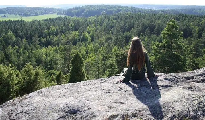 Huttalan linnavuori teki oitis vaikutuksen minuun. Jo pelkkä polku ylös vuorelle on suoraan kuin fantasiaelokuvasta. Mieleen juolahtikin, että täällähän olisi hyvä paikka mallikuvauksellekin. Asia muhi päässäni viime kevääseen saakka, jolloin keksin, että puolituttuni Laura Nurmi sopisi tähän miljööseen malliksi kuin veitsi voihin.