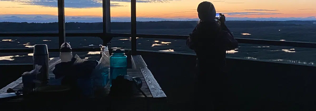 Aika on kulunut kuin siivillä. Syömme loput eväät ja toteamme, että jälleen kerran reissu kannatti. Unohtumaton retkielämys mukanamme ja kuorohuutojen sarja taustamusiikkinamme keräämme tavarat reppuihin ja laskeudumme metsän siimekseen. Otsalamppujen valossa palaamme yhdessä muiden retkeilijöiden kanssa samaa reittiä takaisin autolle ja kohti kotia. Paluumatkalla on pakko pysähtyä ihailemaan syysillan sinistä järvimaisemaa, ja kuunnella vielä hetken lintujen korviahuumaavaa äänimaailmaa.