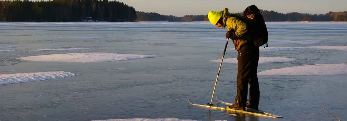 PS. Ethän missään olosuhteissa lähde jäille hiihtämään ilman jääturvallisuusvarusteita. Luonnonjäillä voi olla laivaliikenteestä, tuuliolosuhteista, veden lämpötilasta ja virtauksesta johtuvia heikkoja kohtia. Liiku siksi aina naskalien kanssa, varavaatekerta vesitiiviisti pakattuna ja seurassa. Jos haluat oppia lisää jääturvallisuudesta, suosittelen retkiluistelijoille tarkoitettuja tulokaskursseja.