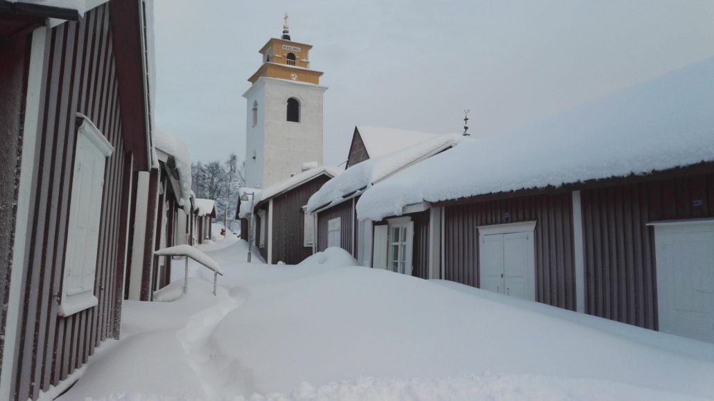 Jätämme automme parkkiin retkikohteemme laitamilla olevalle parkkipaikalle ja suunnistamme infotaulun kautta punaisten puurakennusten kujille seikkailemaan. Lunta riittää! Gammelstadin kirkkokaupunki syntyi tarkemmin sanottuna keskiajalla, kun ihmiset tarvitsivat yöpymispaikkoja pitkillä kirkkomatkoillaan. Vastaavanlainen, mutta paljon pienempi keskittymä on tietysti monen Lapin kävijän tuntemat Utsjoen kirkkotuvat. Luulajan Gammelstadissa tupia on peräti 408, mikä tekee siitä suurimman ja parhaiten säilyneen kirkkokaupungin maailmassa. Tuvat ovat enimmäkseen yksityisomistuksessa ja niitä käytetään edelleen myös alkuperäiseen käyttötarkoitukseensa, kuten myös rippikoululaisten majoittamiseen. Gammelstadissa on kiellettyä asua pysyvästi. Alueella on muutama ravintola, museorakennuksia ja käsityöläispuoteja.