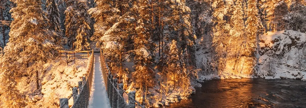 Joulukalenteri, luukku 12: Lumi ja talviaurinko hämmästyttävät valollaan Kuusamon Pienellä Karhunkierroksella