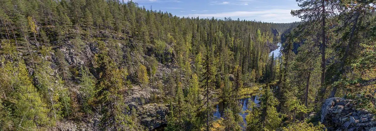 Noin puolessa välissä matkaa laavulle kanjoni jakautuu kahteen osaan. Järvi jatkaa lännenpuoleista rotkoa, ja itäinen vajoama, Sitkansola, on lähinnä suota. Näkymät eivät tosin huonontuneet.
