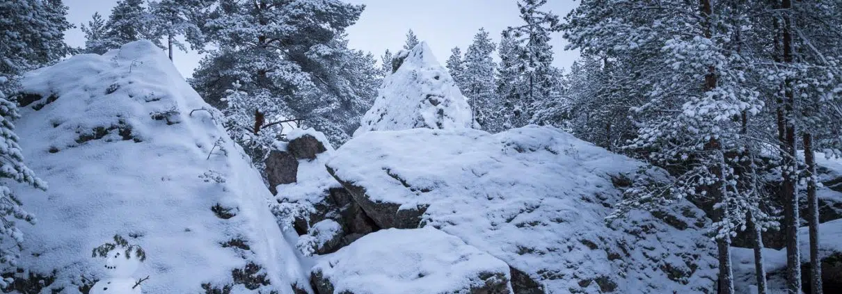 Pesäkivet-nimestä en löytänyt googlettamalla mitään lisätietoa. Voisiko olla, että onkaloissa on asustellut jos jonkinmoista elukkaa? Kenties ilveksiä? Ainakin hiiren jälkiä tuoreessa lumihangessa näkyy paljon. Mahtavista ja terävistä lohkareista on vaikea ottaa niiden ansaitsemaa mahtipontista kuvaa. Tyydyn siis sanomaan, että poikkea itse paikalle ihmettelemään!