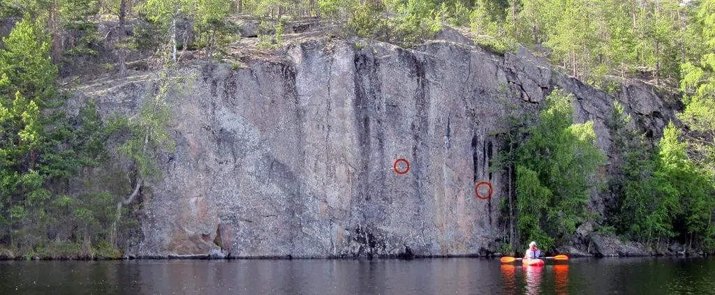 Kajakilla kolmen kalliomaalauksen kierros Konnivedelle