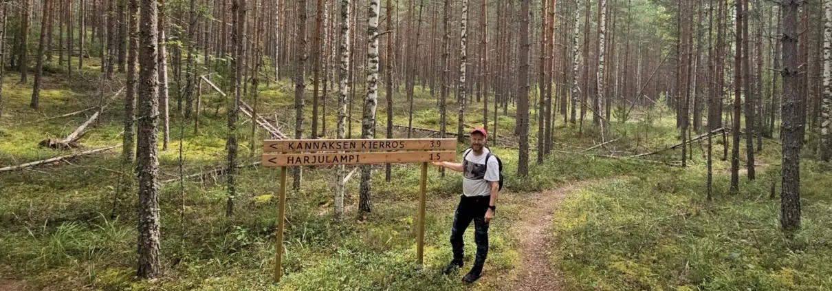 Hetkeä myöhemmin noustaan kuitenkin takaisin harjumaisemiin. Ajattelin mielessäni, että tällä reitillä voisi kävelijälle antaa tehtävän: laske kuinka monta mäntyä näet reitin varrella. Niitä on totisesti tuhansia ja taas tuhansia.