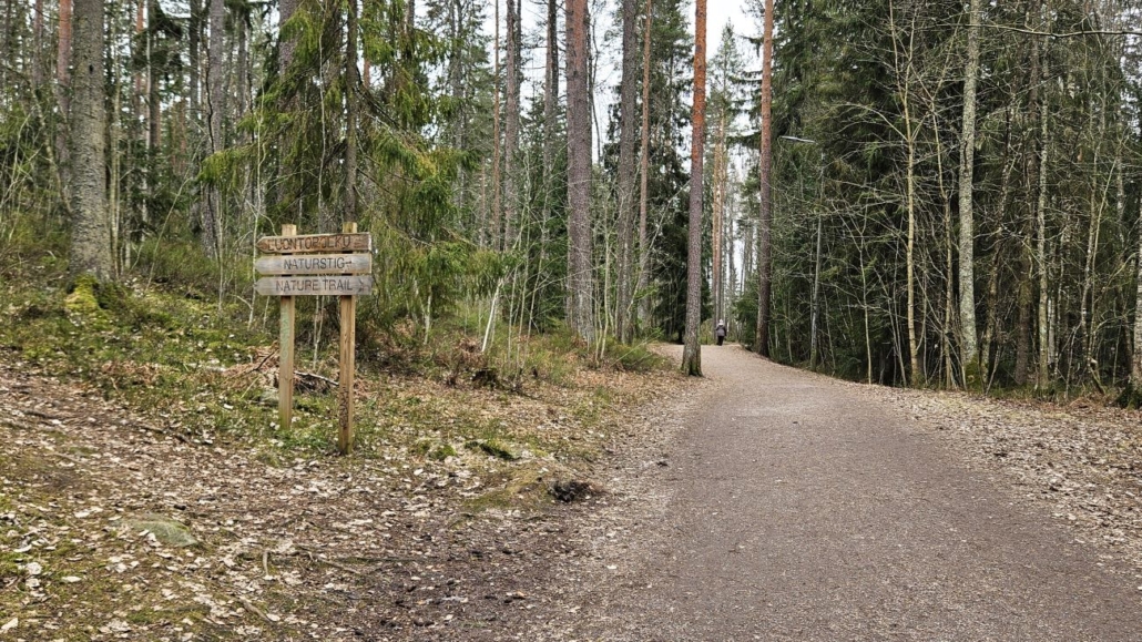 Puron varresta reitti palasi nopeasti leveälle ulkoiluväylälle ja minun kierrokseni alussa ollut luontopolku-kyltti on vain muutaman kymmenen metrin päässä. Tästä etsin taas polun kohti koulua ja Kalasääksentien pysäköintipaikkaa.