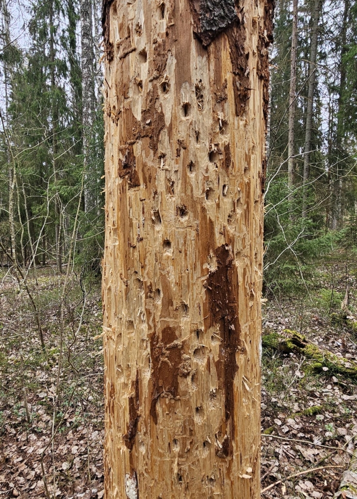 Käpytikan ja/tai palokärjen ääntä kuulin muutamassakin kohdassa reitin varrella. Jälkiäkin ovat reitin varrelle jättäneet.