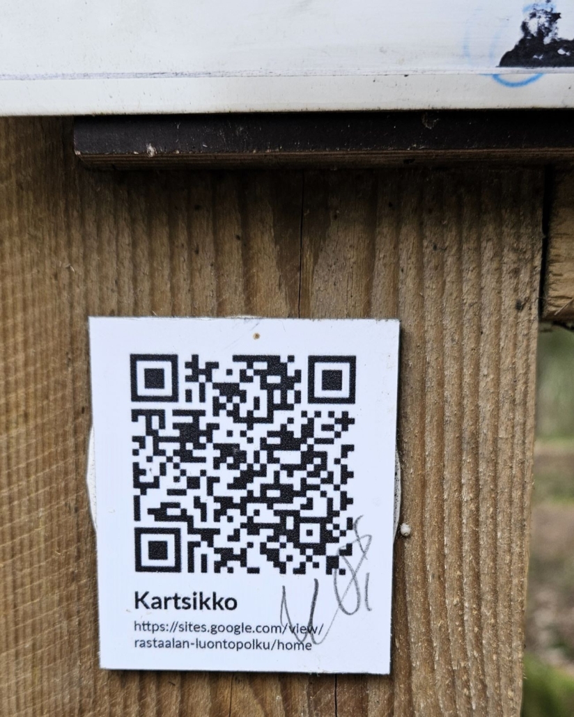 Luin taulusta, että reitin varrella on QR-koodeilla varustettuja tolppia. Näistä saa lisätietoa alueen merkittävimmistä luontokohteista. Infotaulussa oli QR-koodi ja aiheena ”Kartsikko”. Mikähän se olisi? Ilmeisesti yksi Karakallion lempinimistä, veikkaan minä. Koodi avaa sivun, jossa on jotakuinkin samat tekstit kuin itse infotaulussa.