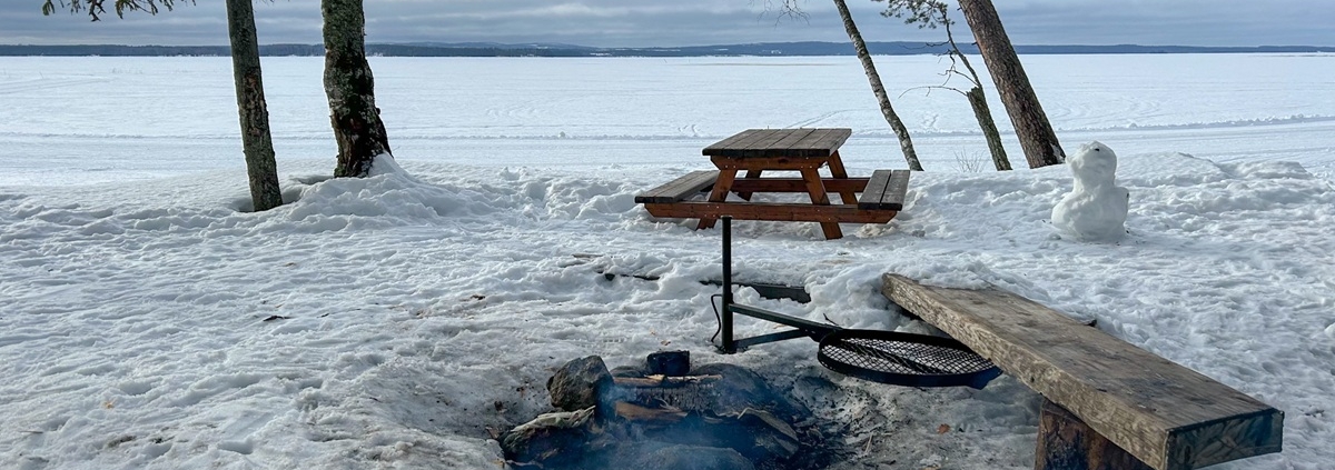 Melkein Kaarreniemen päässä, pidemmän aurinkoladun varrella on laavu ja tulipaikka huikeiden järvi- ja vaaramaisemien äärellä. Rannalta aukeaa järvenselkä, joka jatkuu Kajaaniin asti. Kun aurinko paistaa ja tuuli on hentoa, tällä paikalla viipyy mielellään pidempääkin. Jos haluaa maksimoida järvimaisemat, kannattaa hiihtää järvipätkä Kaarreniemen laavulle edestakaisin. Matkaa tulee myös tällä tavalla kymmenisen kilometriä eli saman verran kuin pidemmän aurinkoladun ympyrälenkillä.