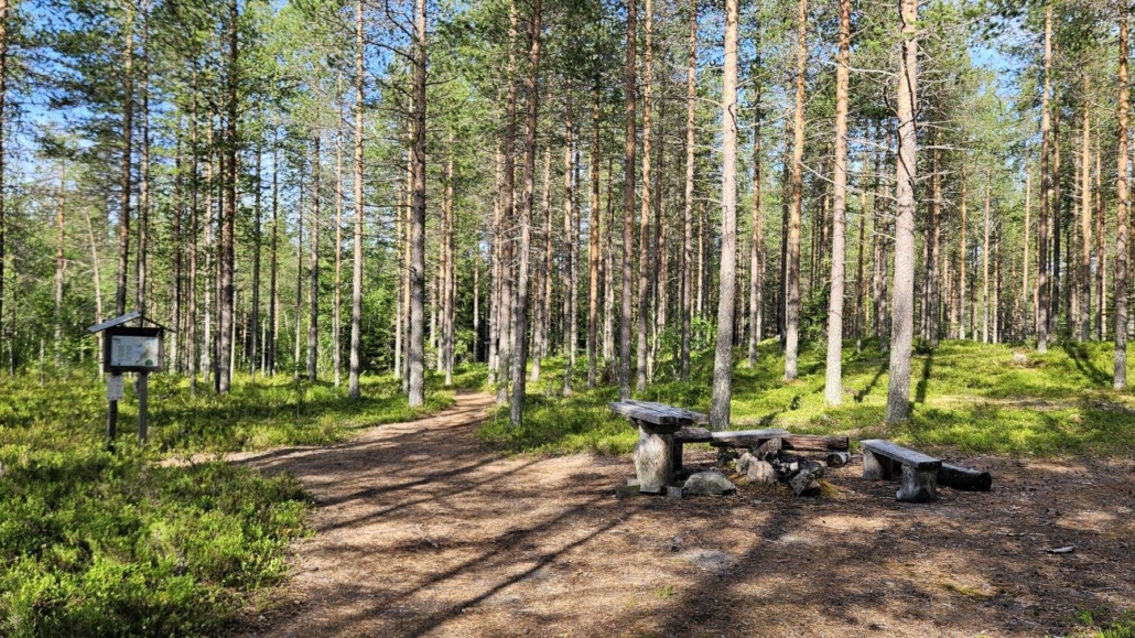 Kuljetaan siis Perälammin pohjoisrantaa pitkin. Täällä on hieno ja esteetön taukopaikka.