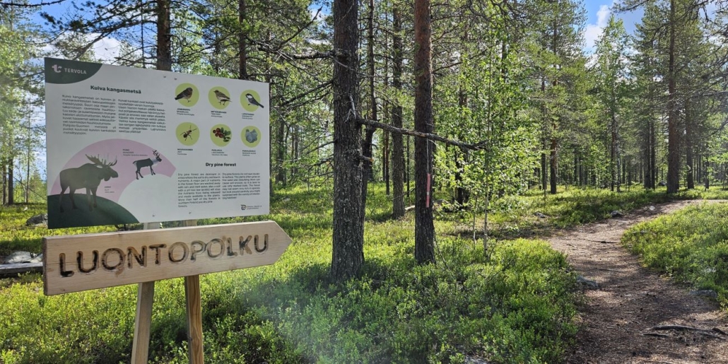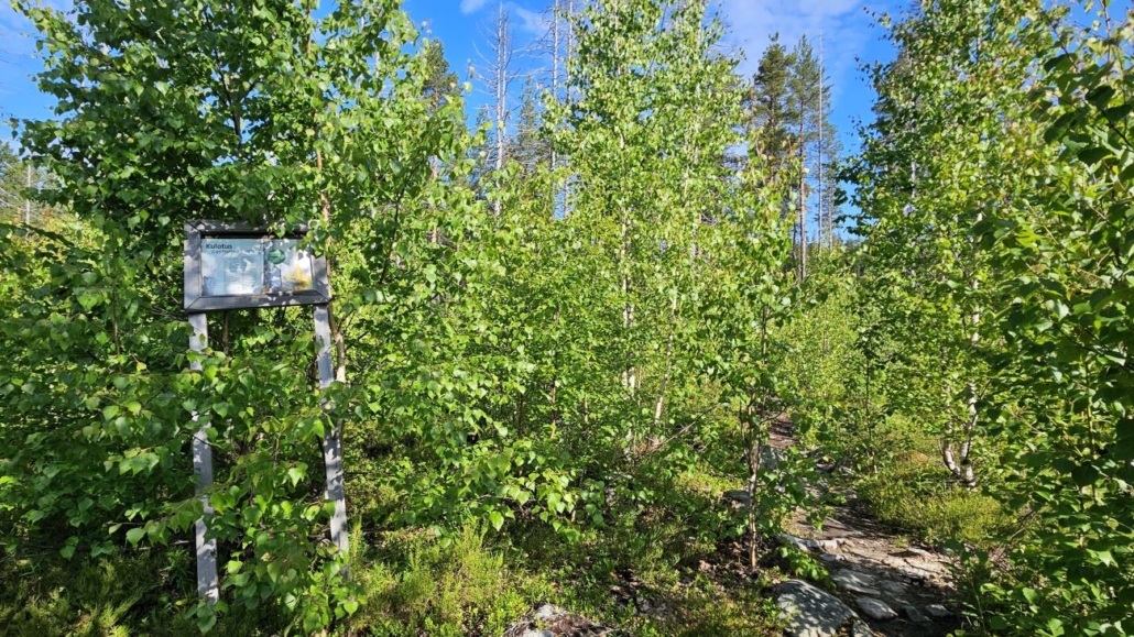 Polku on kapeahko, mutta eksymisen vaaraa ei ole. Tämän luontotaulun aiheena on kulotus.