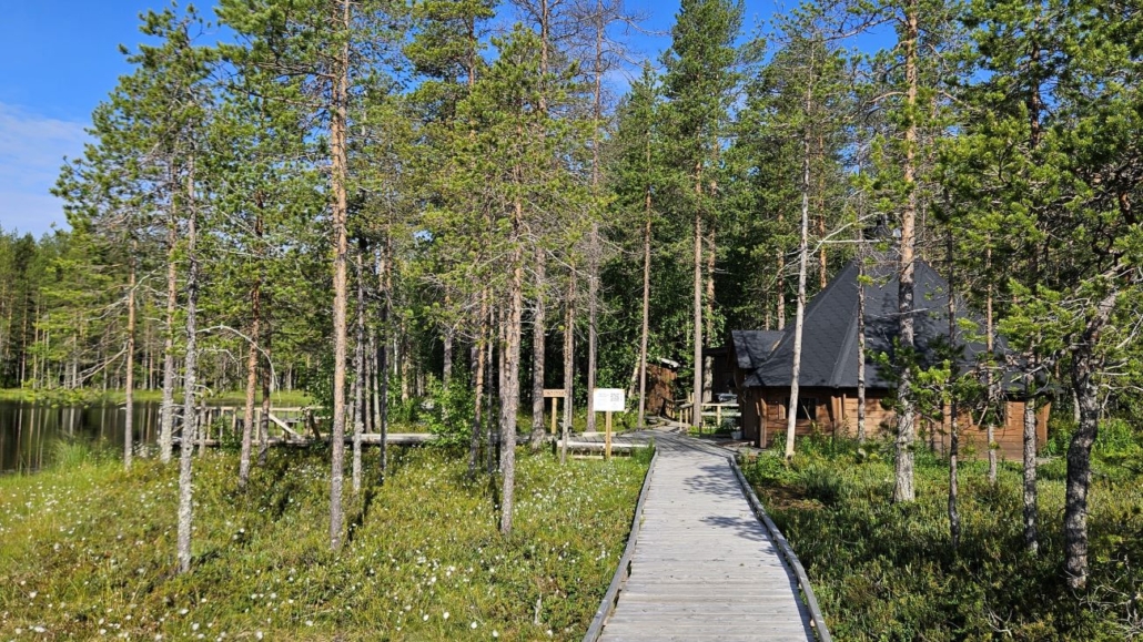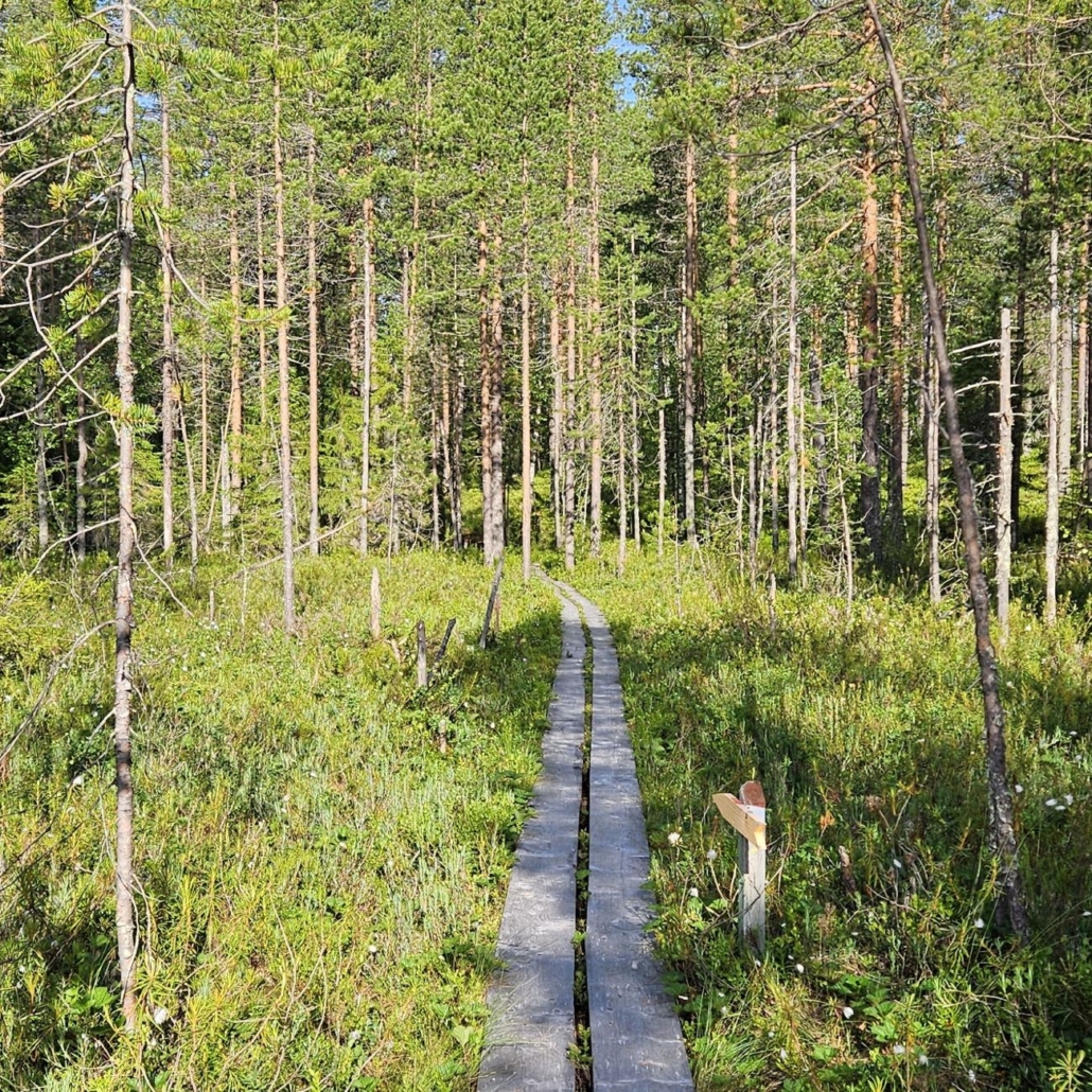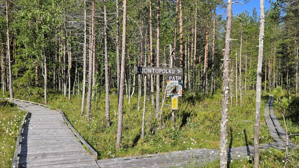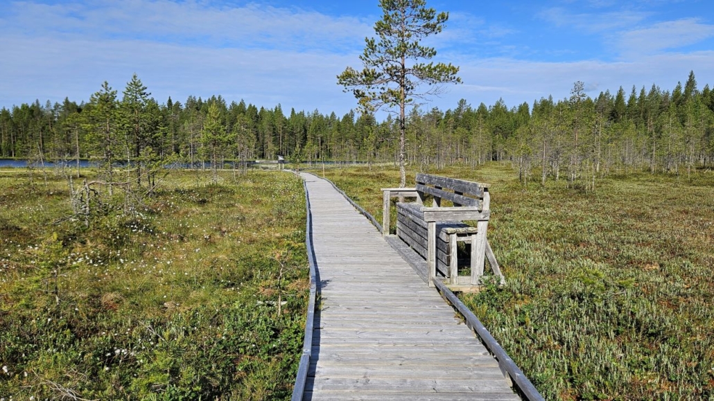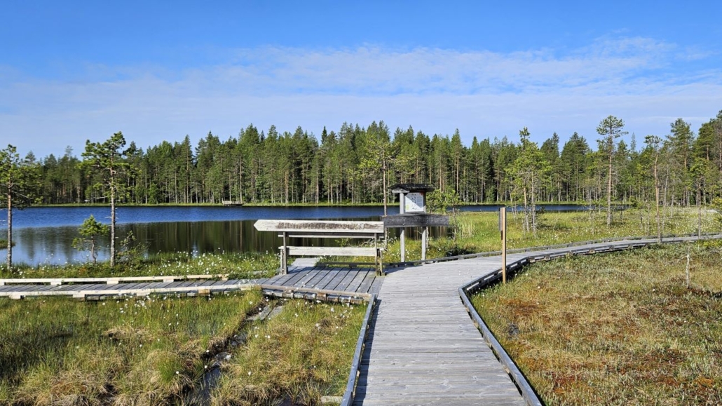 Matka alkaa siis esteetöntä reittiä pitkin. Leveä lankkupolku vie Perälammille. Myös istumapaikkoja on tässä lampien läheisyydessä paljon.