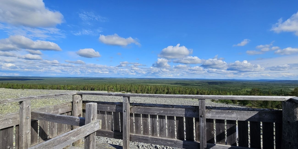 Maisema on hieno myös koilliseen. Siellä näkyy Pisavaaran luonnonpuisto, jossa kaikki liikkuminen ilman lupaa on kielletty.