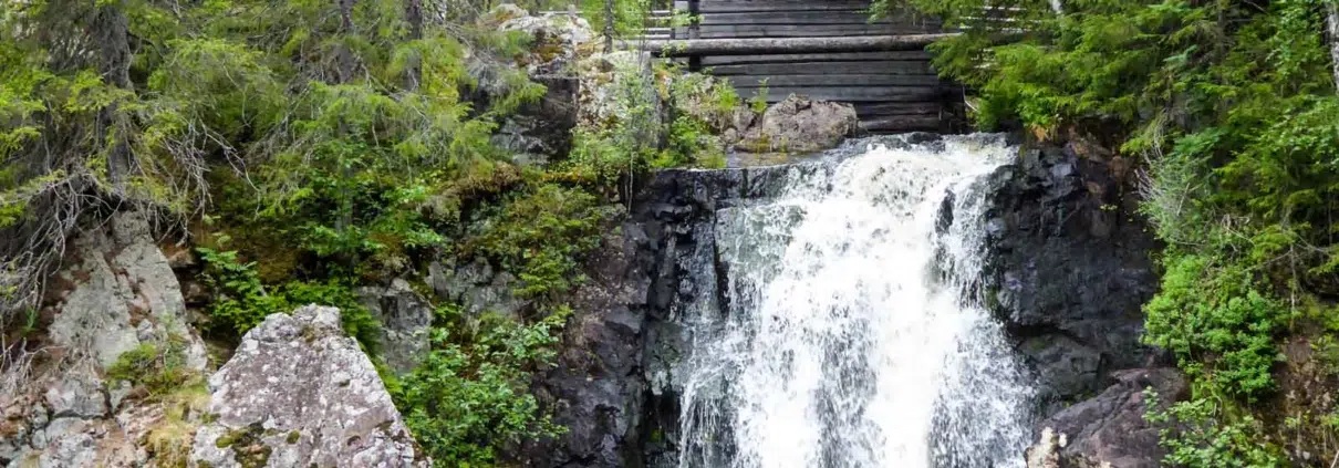 Kun aamu koitti, astelin edelleen innokkaita hyttysparvia hätistellen Hepokönkäälle, missä vesi ryöppysi uljaana putouksena alas Heinijokeen. Taisin olla koko reissun kauneimmassa paikassa. Tuntui siltä, että Suomen poikki kannattaa kävellä!