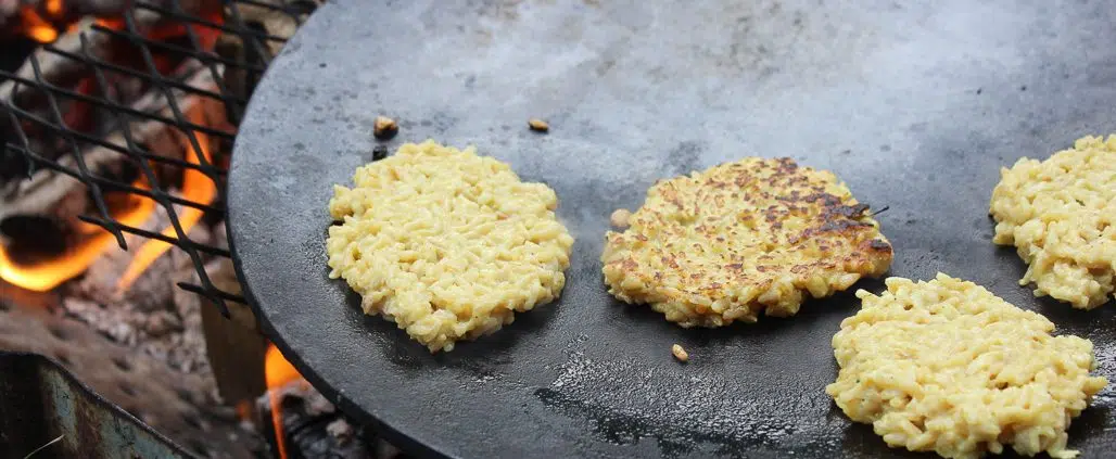 Riisipihvit ovat aika ruokaisia. Sopivat erinomaisesti vaikkapa kalan tai muun kevyemmän nuotioruuan lisukkeeksi. Näitä on myös kätevä tehdä sisätiloissa, jos haluaakin retkeillä esimerkiksi omalla parvekkeella…