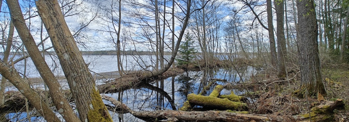 Kierroksen viimeisillä metreillä Suujärven rantaluonto tarjoilee vielä parastaan. Vesi on ylhäällä ja osa rannan heinikosta upoksissa. Nautimme sini- ja valkovuokkojen kauneudesta auringonpaisteessa, katselemme ja kuvaamme erilaisia kääpiä ja poimimme näkemämme muoviroskatkin, muovikassin ja tyhjän karkkipussin, vesirajasta matkaamme.