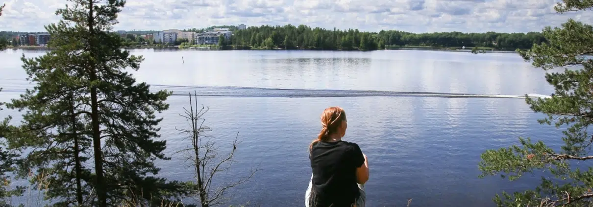 Karhusaaren kiertävä luontopolku on reilun kilometrin mittainen ja matkan varrella on monta levähdyspaikkaa, jonne voi istahtaa toviksi, jos toiseksi nauttimaan kesäpäivästä. Lämpimiltä rantakallioilta näkee vastarannalta nousevat Lappeenrannan rakennukset ja samalla voi seurata ohi ajavia veneitä. Vaikka kaupungin äänet ja kirkonkellojen vaimea kumina kuuluvat hyvin veden yli, on olo levollinen. Voidaanko istua tässä koko päivä?